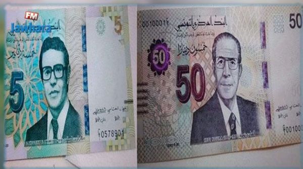 طرح البنك المركزي التونسي للتداول، ابتداء من الخميس 28 أفريل 2022، ورقتين نقديتين جديدتين من فئة 50 دينارا ومن فئة 5 دنانير. وسيتمّ تداول الورقتين النقديتين من فئة الخمسين دينارا ومن فئة الخمسة دنانير بالتوازي مع الأوراق النقدية المتداولة حاليا.