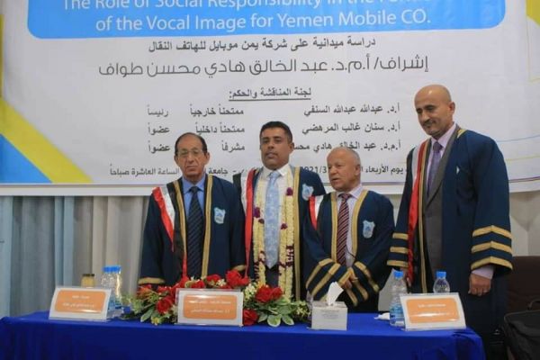 وقد أشادت لجنة الحُكم والمناقشة بالمستوى العلمي والأكاديمي للباحث، وبمنهجية الرسالة والنتائج التي توصلت إليها، والنموذج العلمي الذي تم تطويره لبناء وتحسين دور المسؤولية الاجتماعية في تشكيل الصورة الذهنية لشركة يمن موبايل للهاتف النقال من منظور إداري/ اتصالي.